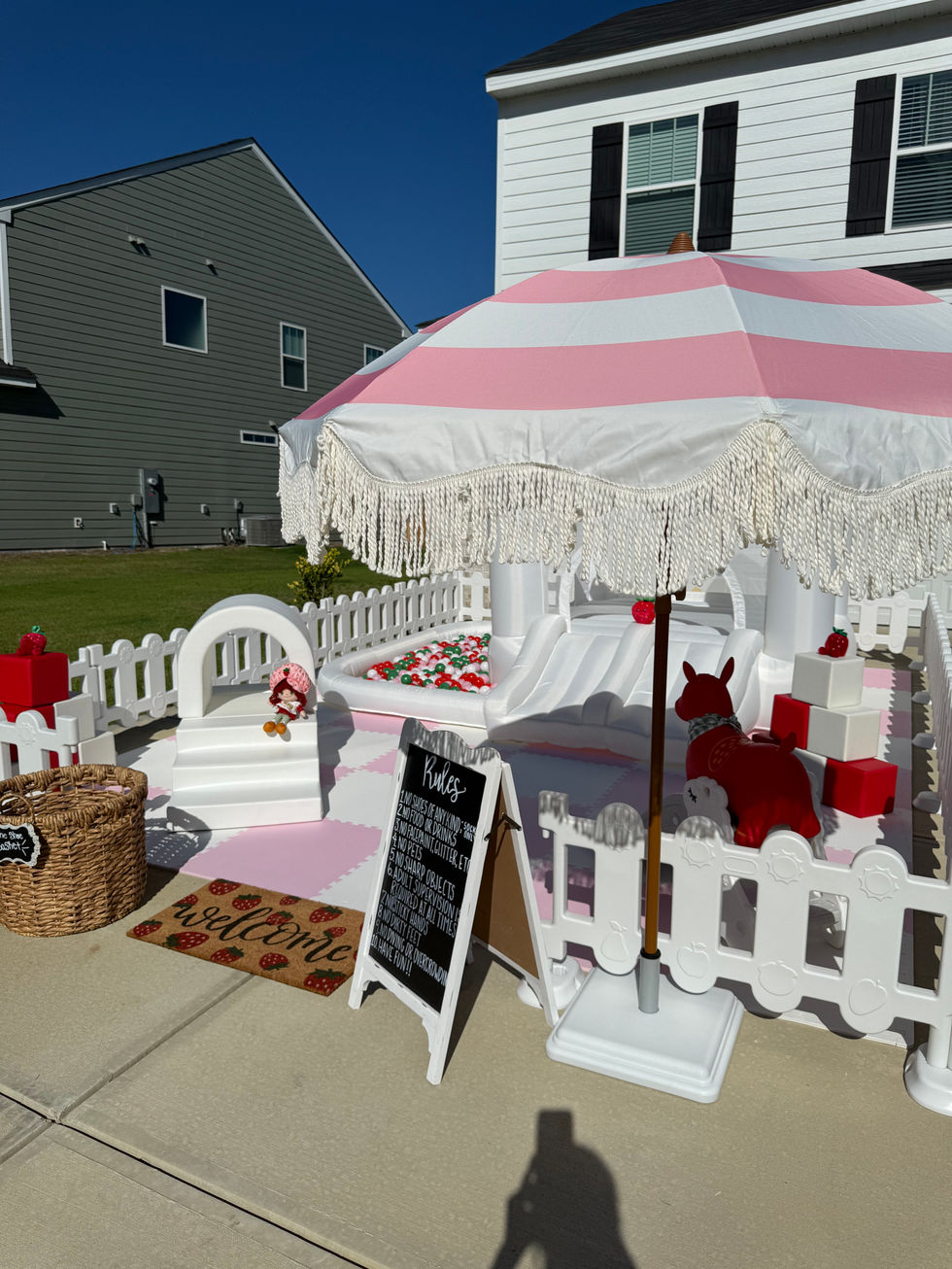 This Strawberry themed soft play is perfect for themes such as "Berry First Birthday", "Berry Happy Birthday", "Two Sweet", and " Three Berry Shortcake"