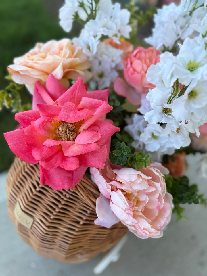 This Doll Pram can be rented with or without the florals. We can customized the colors of the florals to match your theme and colors. This is perfect for pregnancy announcements, gender reveals, baby showers, and milestone photoshoots.